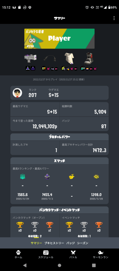 ようやくS+15、いつの日かS+50になったら次はイカランプ見れるようになろう、今はまだ見なくていいや。ハッピートリガー